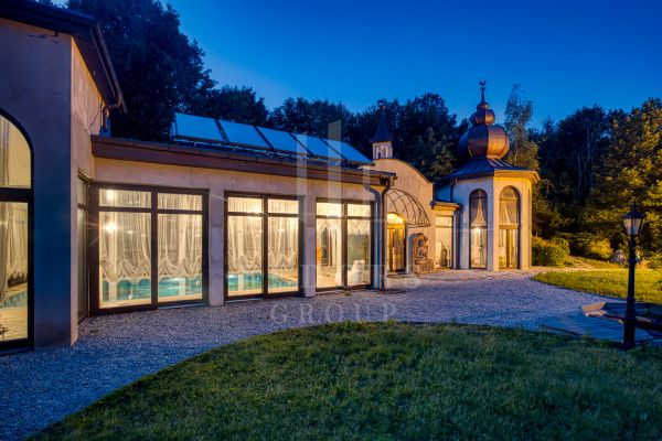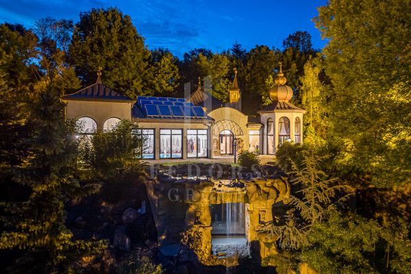 Ponúkame na predaj Luxusnú historickú vilu s rezidenciou s vodopádom na pozemku a vlastným potôčikom. V areáli sa nachádza samostatne stojaci dom s konferenčnou miestnosťou disponuje otvorenou spálňou s kúpeľňou, vnútorným bazénom, tanečnou sálou a golfovým simulátorom PGA Tour. Dom má vlastné solárne panely na streche. Vila aj dom majú vlastné samostatné tepelné čerpadlá.