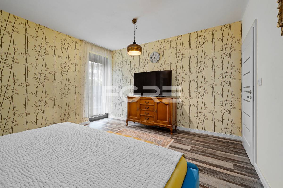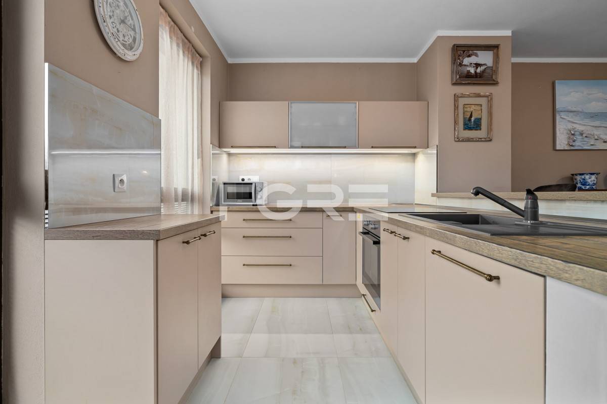 Dispozične byt pozostáva z veľkej obývacej izby prepojenej s kuchyňou, hlavnej spálne s walk-in šatníkom, detskej izby, kúpeľne, samostatného WC a vstupnej predsiene. Veľkorysý šatník ponúka potenciál na úpravu napríklad na ďalšiu kúpeľňu s toaletou, čo zvyšuje variabilitu priestoru do budúcna.